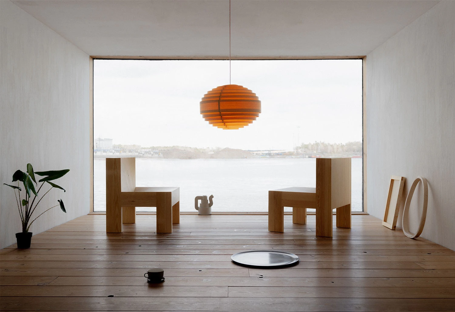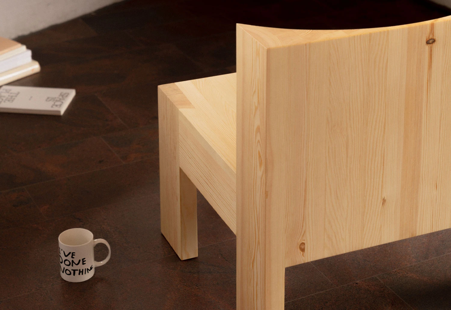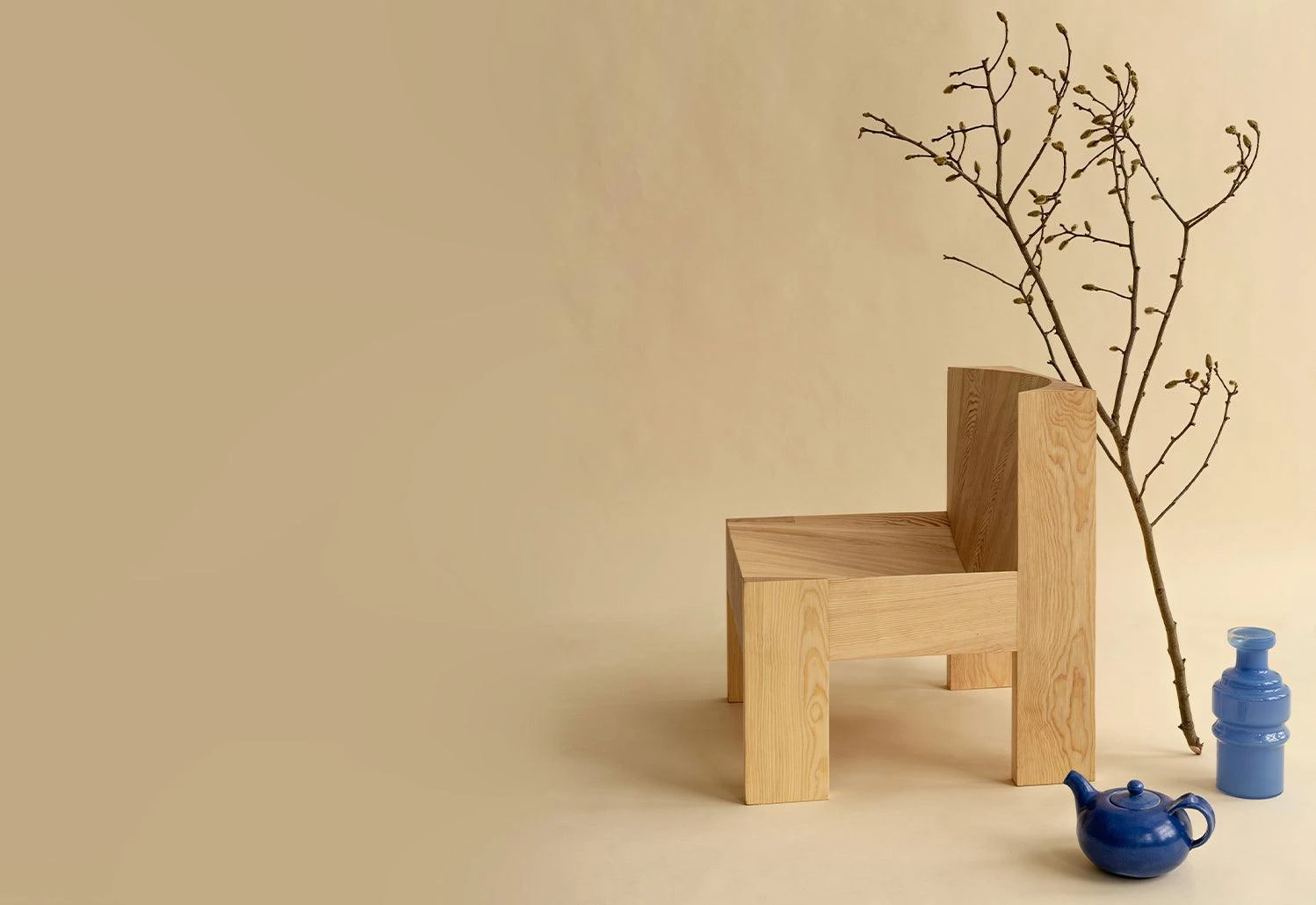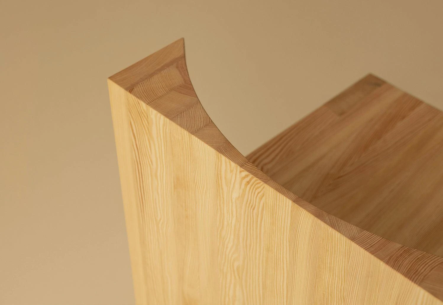 Material is then removed from the hefty form to create two spacious convex recesses that exhibit the characterful grain within.