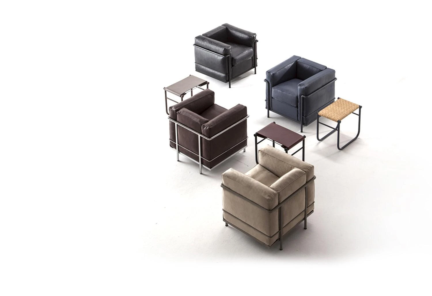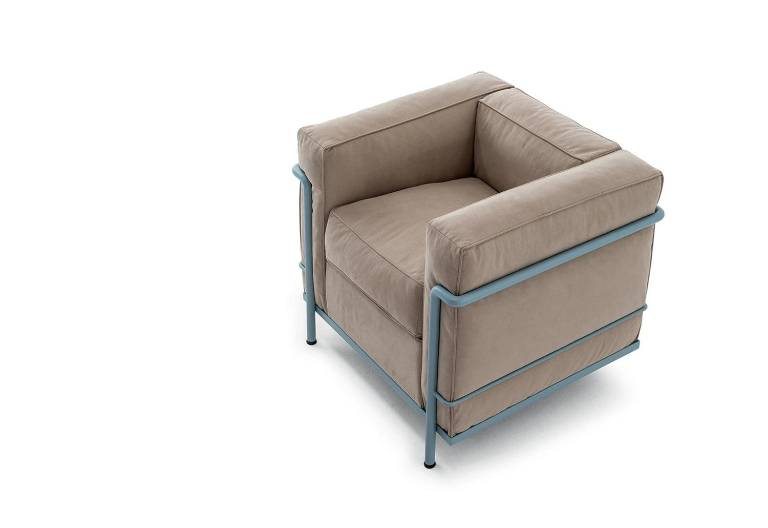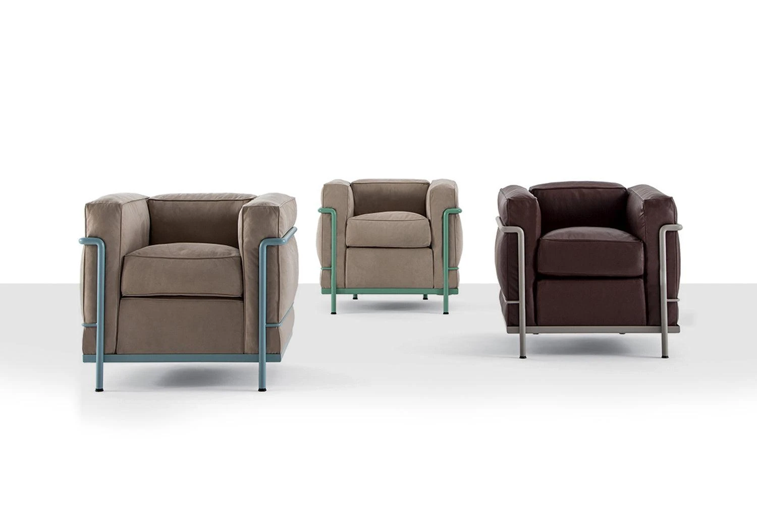 Please note: pricing example is for feather-padded cushions, please enquire for a polyester padded version. The chair was previously known as the LC2 armchair.