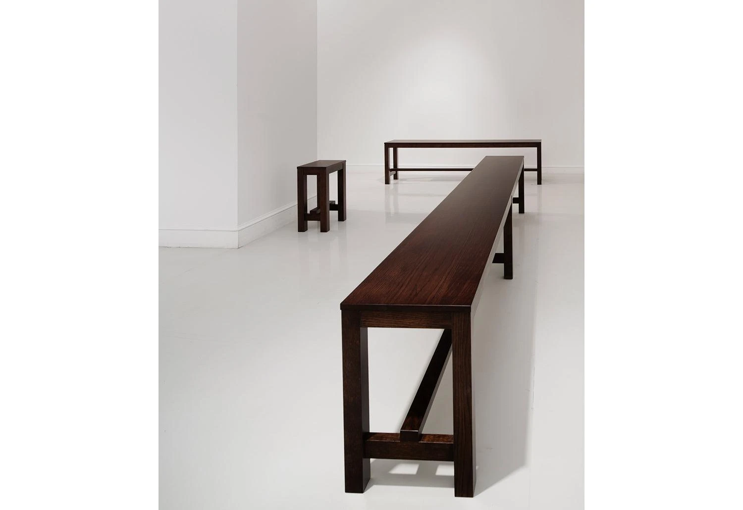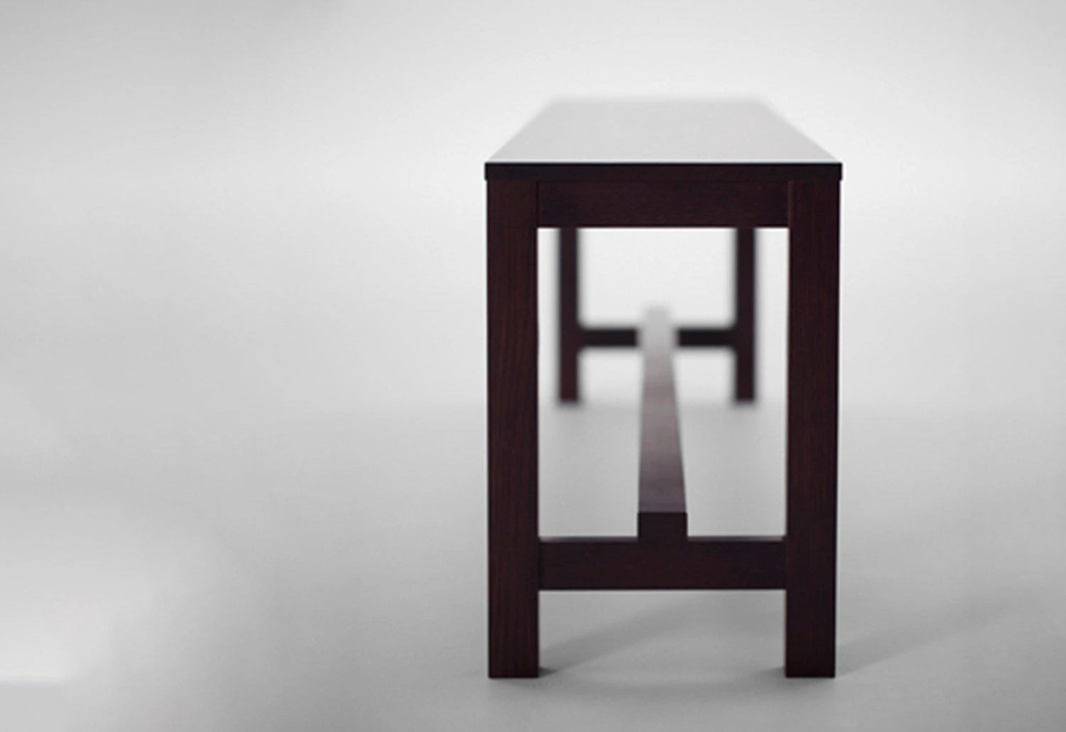 ‘The basic structure of the bench with its combination of square logs and plates enables it to also work as a display table or a shelf. The deep brown colour, characteristic of traditional Asian furniture, will deepen over time.’ Naoto Fukasawa.