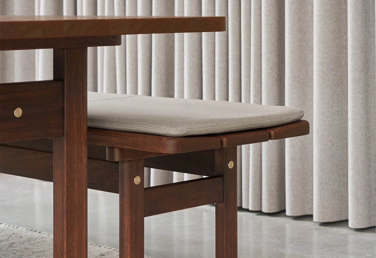 Inspired by the honest designs of Shaker-style furniture, the series is characterised by its rounded forms and exposed brass screws. This informal aesthetic provides the furniture with visual clarity and a strong structure, making it a timeless addition to the home.