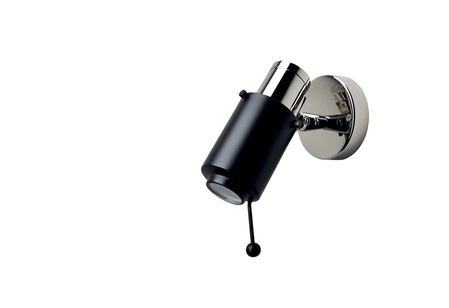 Drawing inspiration from 1950s modernist design, the Biny spotlight has a distinctively industrial aesthetic. With an original ball joint, the wall-mountable spotlight can be rotated through 330° with an up or down arc of 88°. This allows a beam of light to be focused on a chosen area with ease.