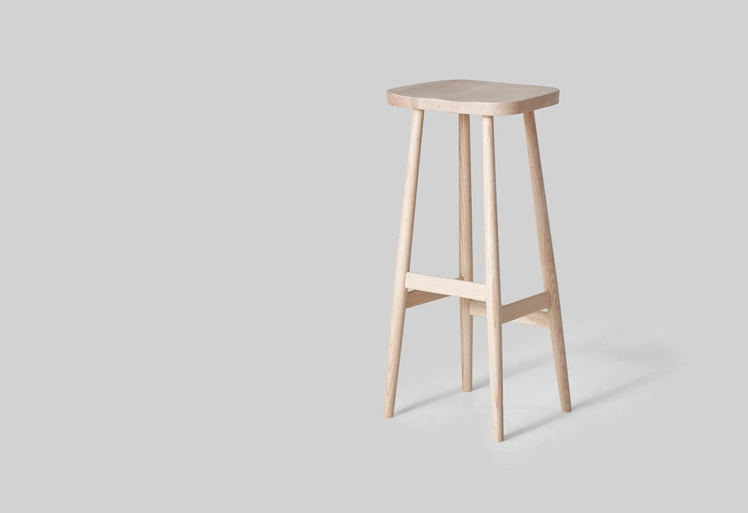 Michael Marriot’s Bird stool is the companion to the Bird chair, a contemporary re-working of the classic wooden Windsor chair.