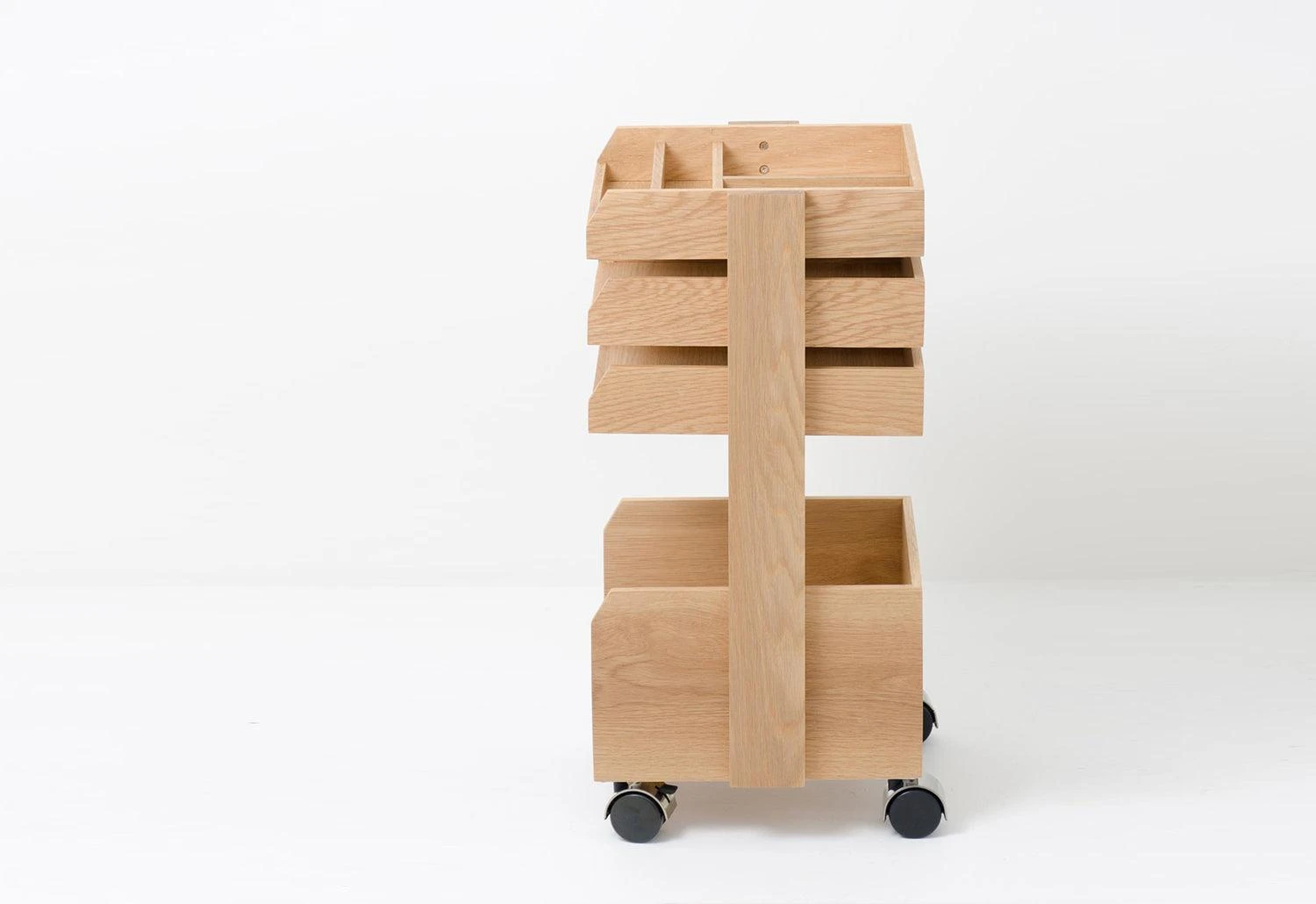 Designed to fit under a table or a desk, the Casper organiser can be wheeled out when needed or stored away when not in use.