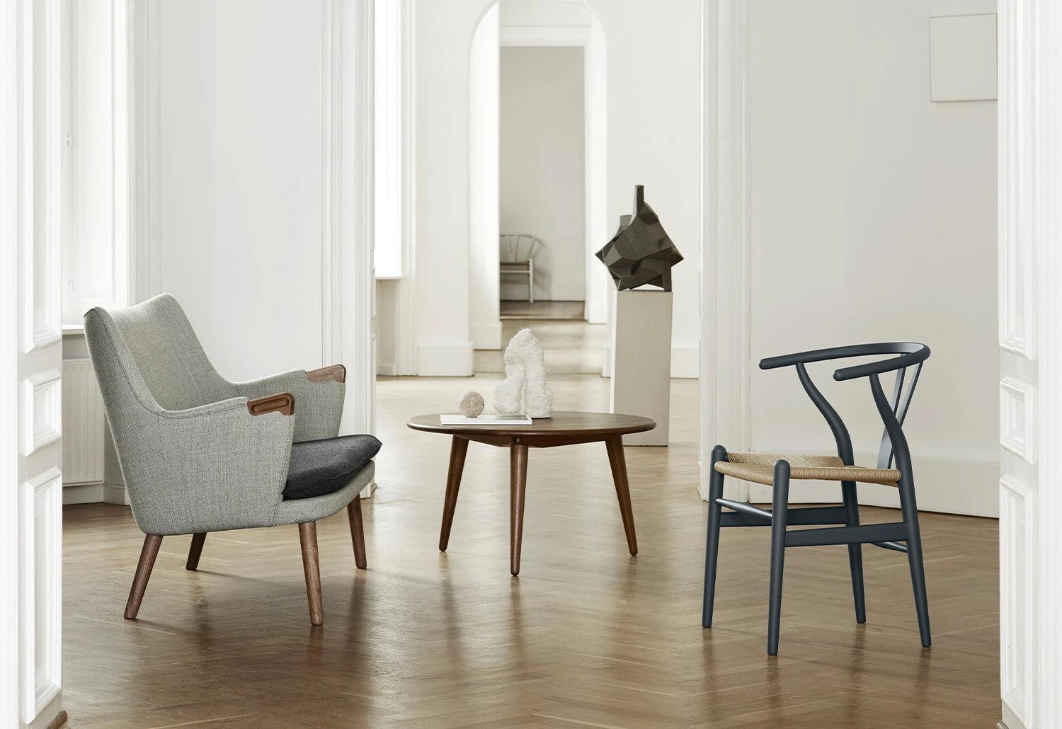 Hans Wegner had a philosophy of never designing furniture with a backside, something which one can clearly see in his CH008 coffee table. The seemingly simple three-legged design is one of Wegner’s most iconic. In his pursuit of perfection, Wegner spent the same amount of time designing the visible parts as he did the more hidden structural parts, resulting in an elegant and timeless table.