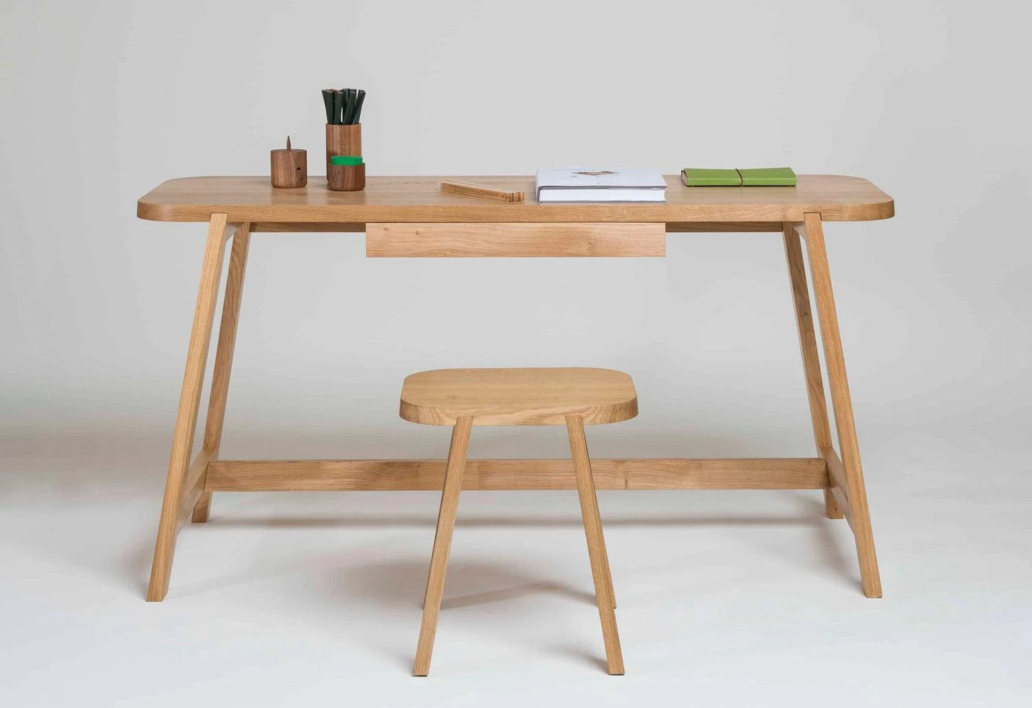 Desk Three is a versatile piece of furniture that works equally as a workstation, a dressing or an occasional table. With its contemporary form and solid construction with precise craftsmanship, this desk can sustain both domestic and commercial uses. The desk’s trestle base and multi-functional form is a nod towards utilitarian forms of industrial furniture.