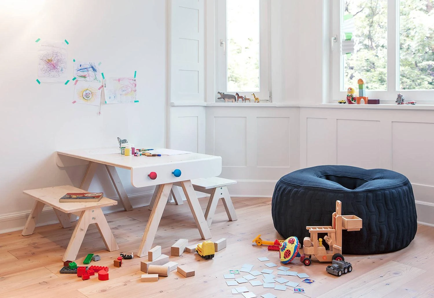 The Famille Garage collection designed by Alexander Seifried can be used as storage, shelving or seating system. This modular furniture set can be adapted to the needs of children of all age groups.