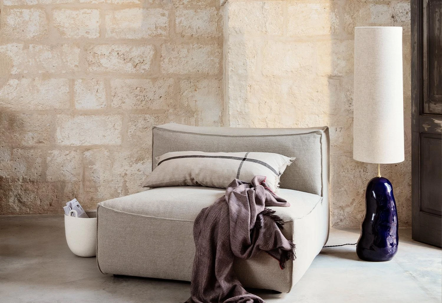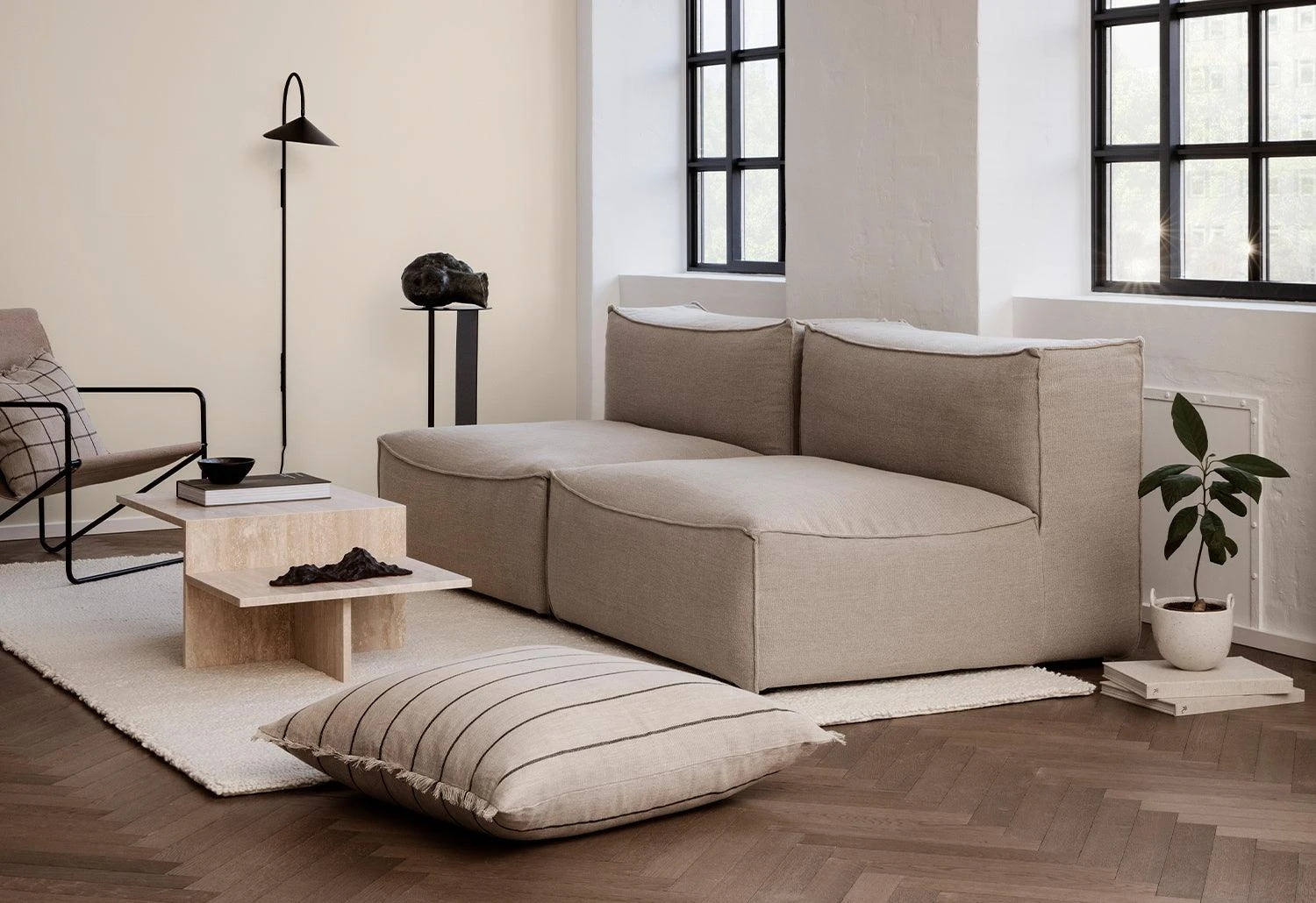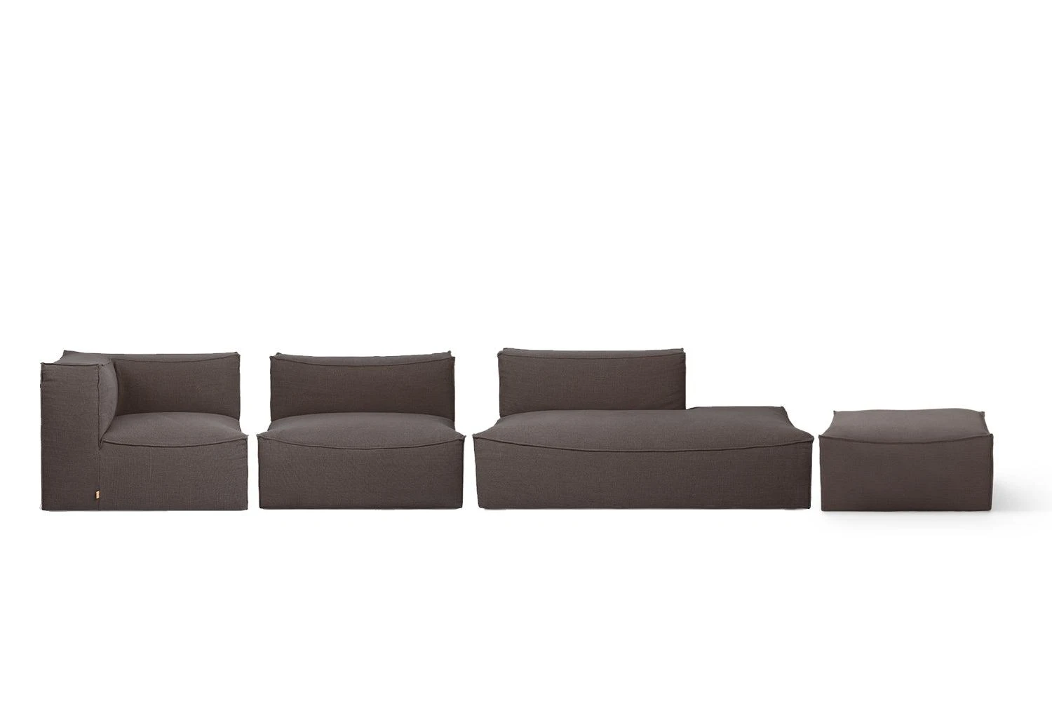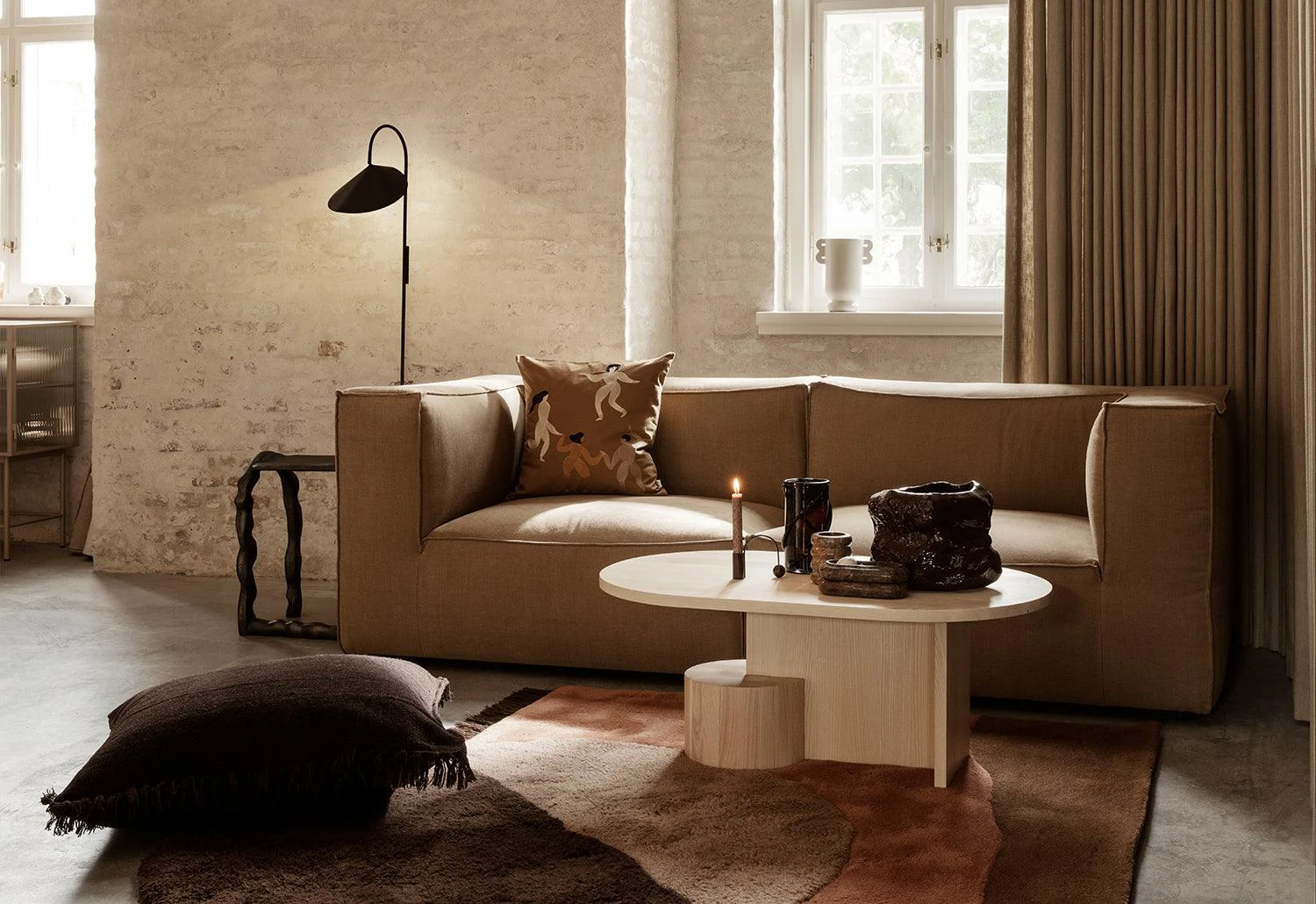 The embracing, beanbag-inspired shape of our low-slung Catena sofa is The Catena sofa from Ferm Living brings bean-bag style comfort with generously dimensioned sofa modules for quality relaxation and cosiness. The low height sofa is inspired by the catenary curve, a u-like shape that a chain or cable adopts when supported only at its ends, and which is mirrored in the soft curves and top-stitched seams of the Catena sofa.