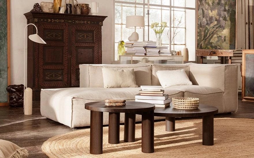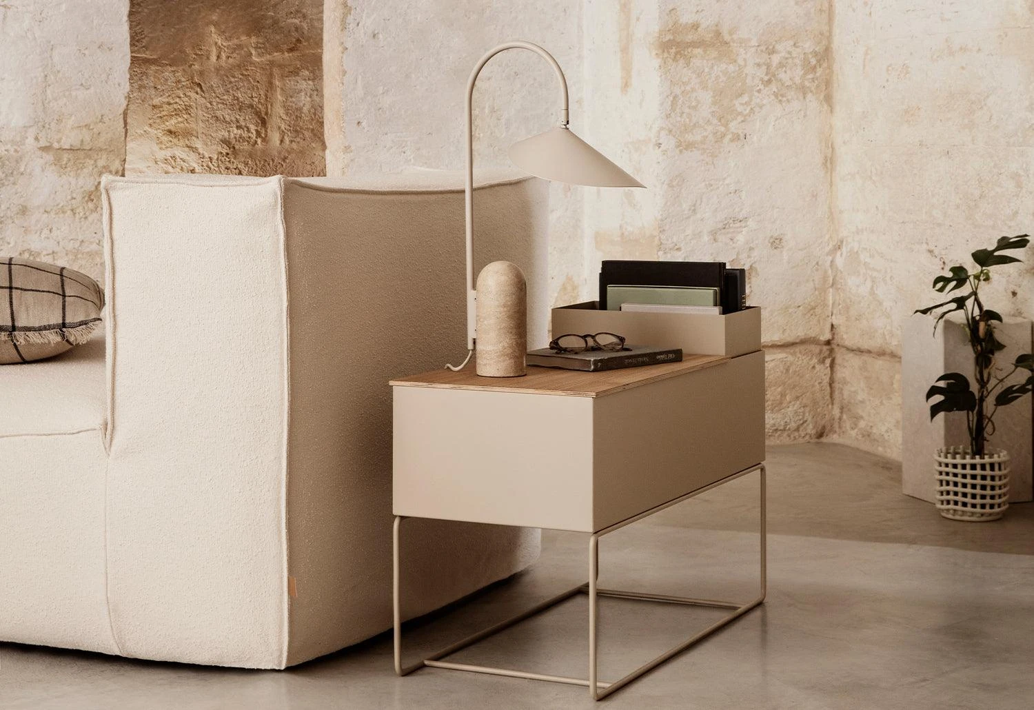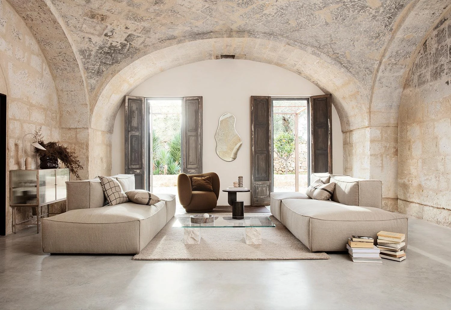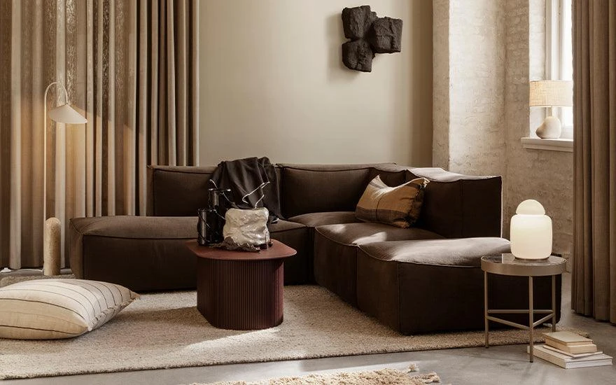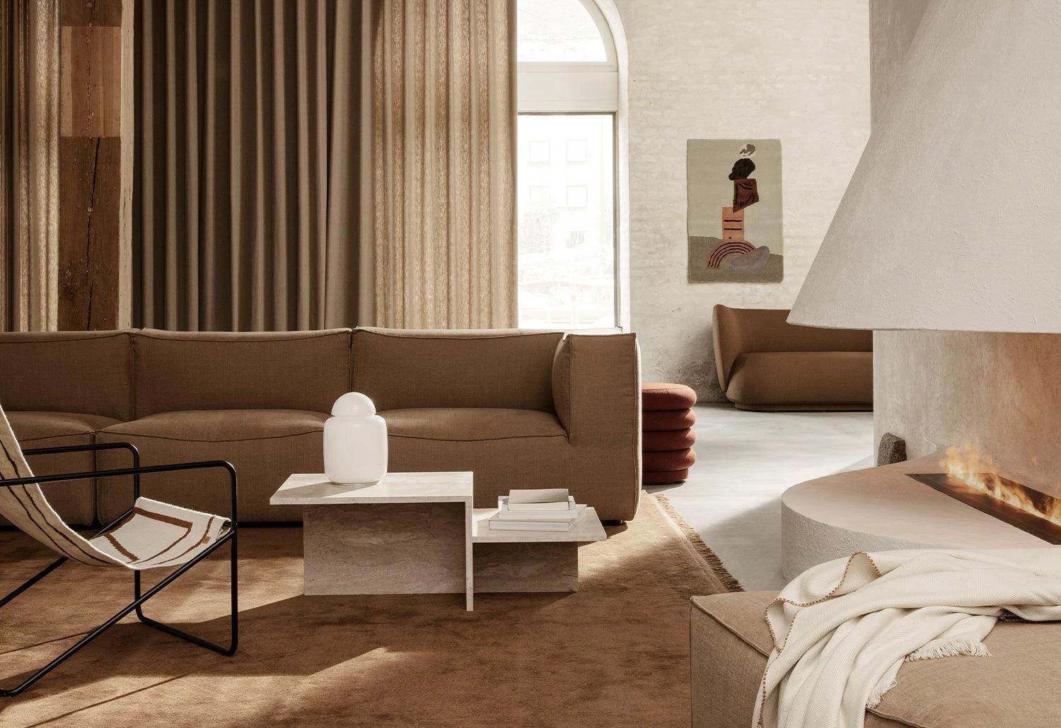 The embracing, beanbag-inspired shape of our low-slung Catena sofa is The Catena sofa from Ferm Living brings bean-bag style comfort with generously dimensioned sofa modules for quality relaxation and cosiness. The low height sofa is inspired by the catenary curve, a u-like shape that a chain or cable adopts when supported only at its ends, and which is mirrored in the soft curves and top-stitched seams of the Catena sofa.