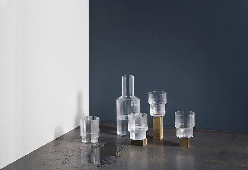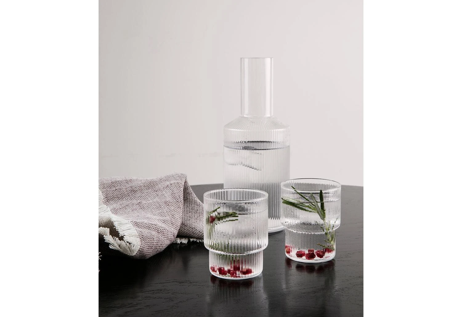 Individually hand-blown glasses in four slightly differing designs. The ripple pattern is achieved by blowing the glass into a mould, which adds a degree of elegance to the fine glassware.