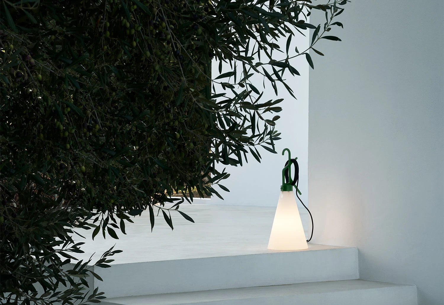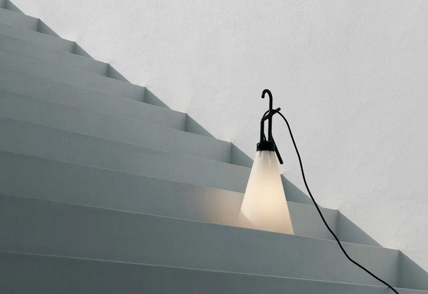 The updated version has reworked the materials to make the light more sustainable and suitable for outdoor use: the injection moulded conical diffuser is assembled from industrial waste polypropylene, whilst the power source for the switch on the handle is protected by a transparent airtight capsule with an elastomer gasket. Together, these revisions in material and design functionality allow the light to achieve a protection rating of IP 65.