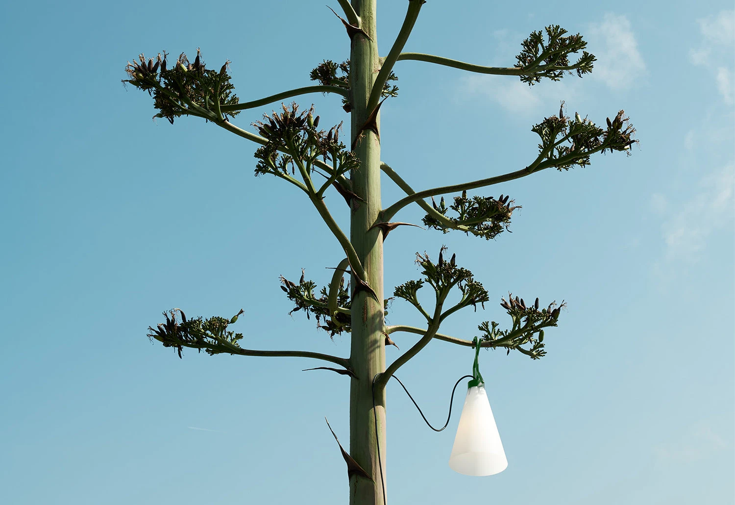 Almost twenty years after the release of Konstantin Grcic’s May Day lamp, the iconic light has been re-invented for outdoor use. The new lamp shares the same classic design as the original May Day lamp, including the practical hook that doubles as a cable winder.