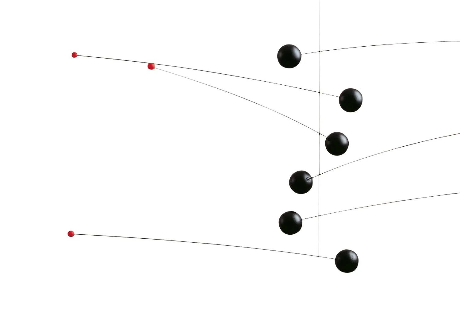 The first mobile designed by Ole Flensted in 1970. The six bars create a dynamic tension between light and heavy counterpoints.