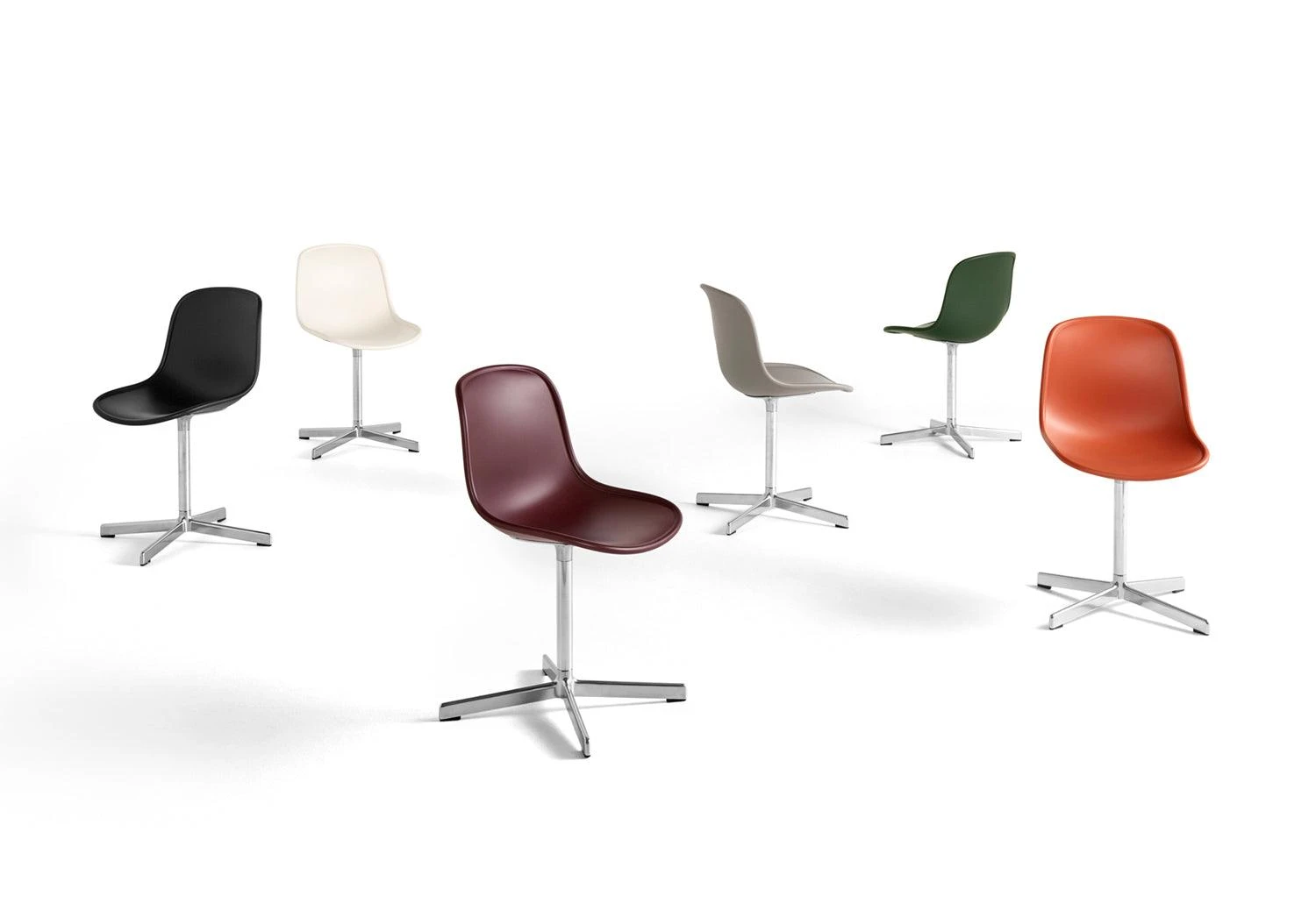 A contemporary side chair, ideal for a workspace or meeting room. The Neu 10 swivel chair is designed to be robust and ergonomically moulded for comfort. The Neu 10 is part of the modern and robust Neu collection by Wrong London.