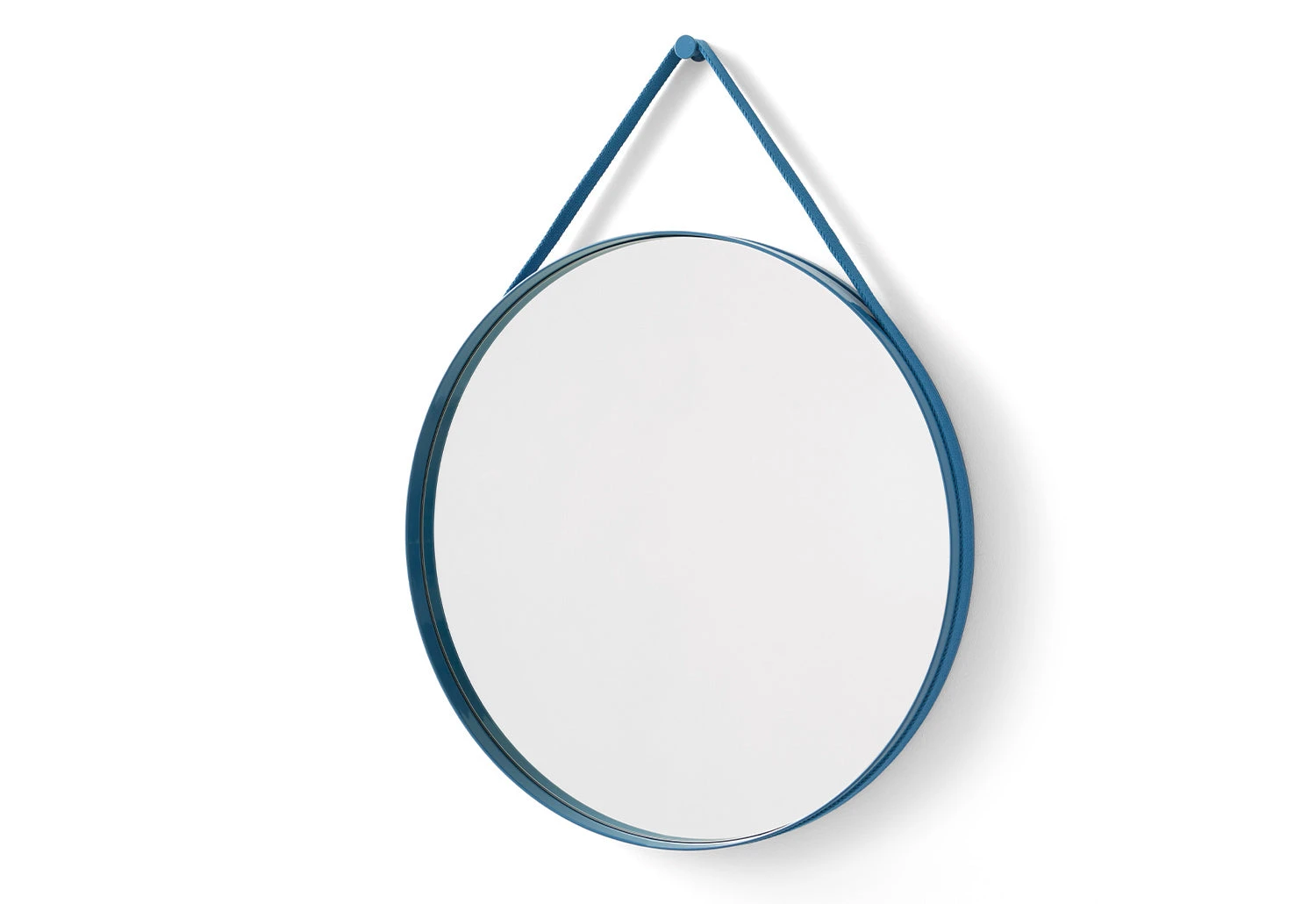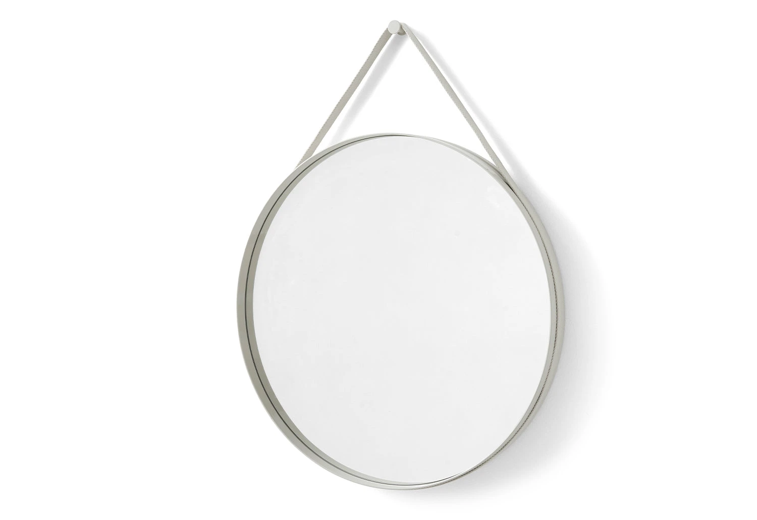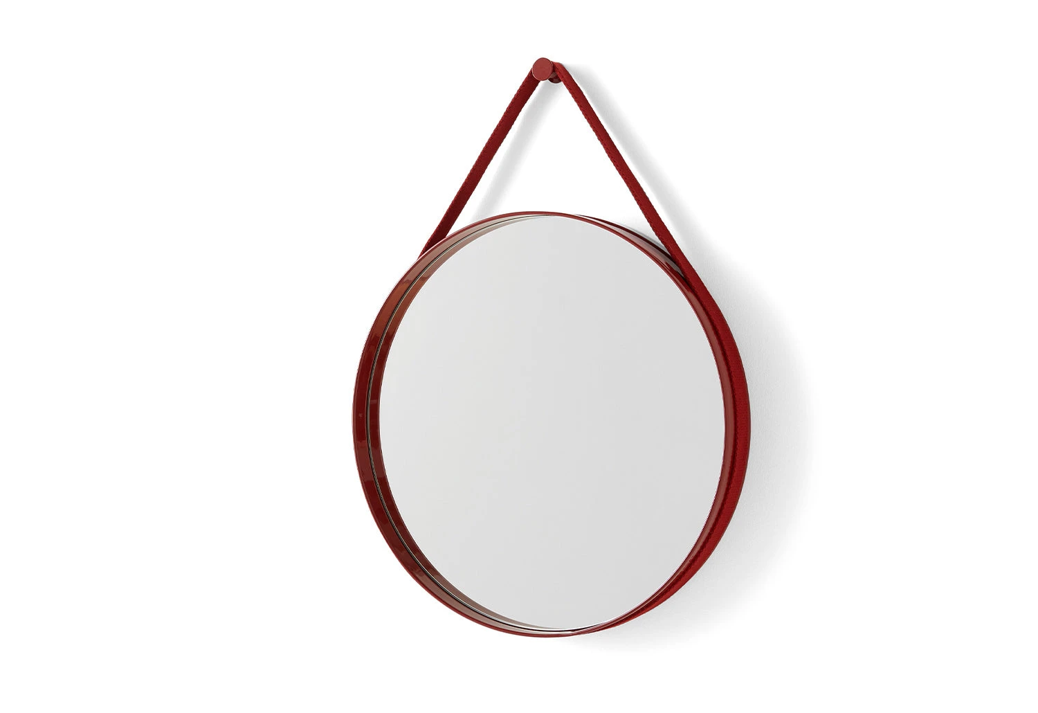 Introducing the HAY Strap Mirror No.2 – the perfect addition to your home decor. With its sleek and simple design, this mirror is not only functional but also stylish. The subtle groove around the edge is not only aesthetically pleasing but also contains a woven strap for easy mounting on your wall.