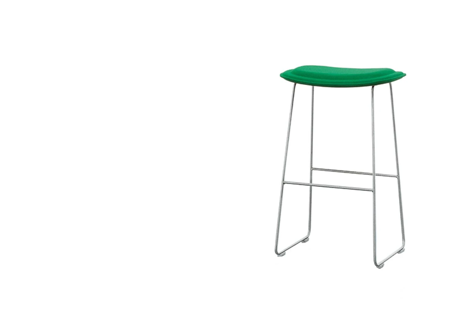 The Hi Pad stool features a beech plywood seat that contours to the human form, delivering a comfortable sitting experience. The seat can be upholstered in a variety of fabrics or leather, making it capable of blending into any decor. The stool is an excellent option for restaurants and bars.