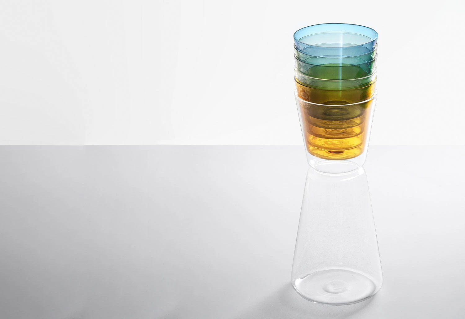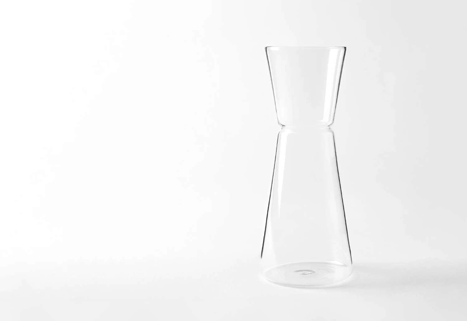 Keiji Takeuchi’s High Rise minimalist collection takes inspiration from the construction of skyscrapers. The High Rise carafe features two connecting borosilicate glass elements, the inbound curves both delineate the level to fill the carafe while offering an ergonomic point at which to hold it.