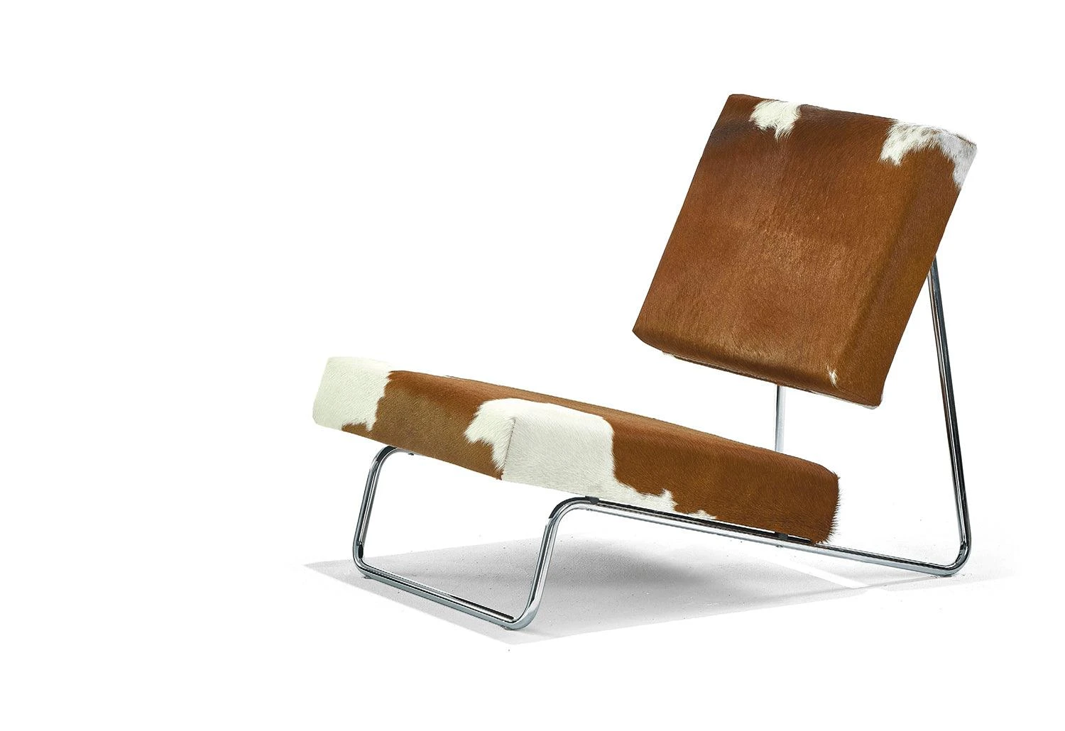 First designed for his home, the Hirche lounge chair is inspired by the Bauhaus where Herbert Hirche studied under Mies van der Rohe from 1930 to 1933. In 2000, the Herbert lounge chair was produced featuring various upholstery fabrics, leather and cowhide.