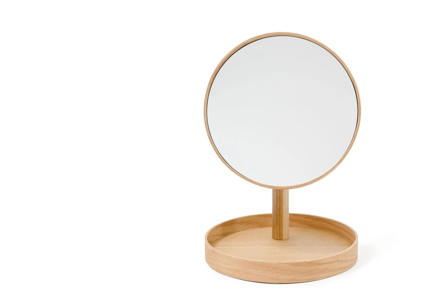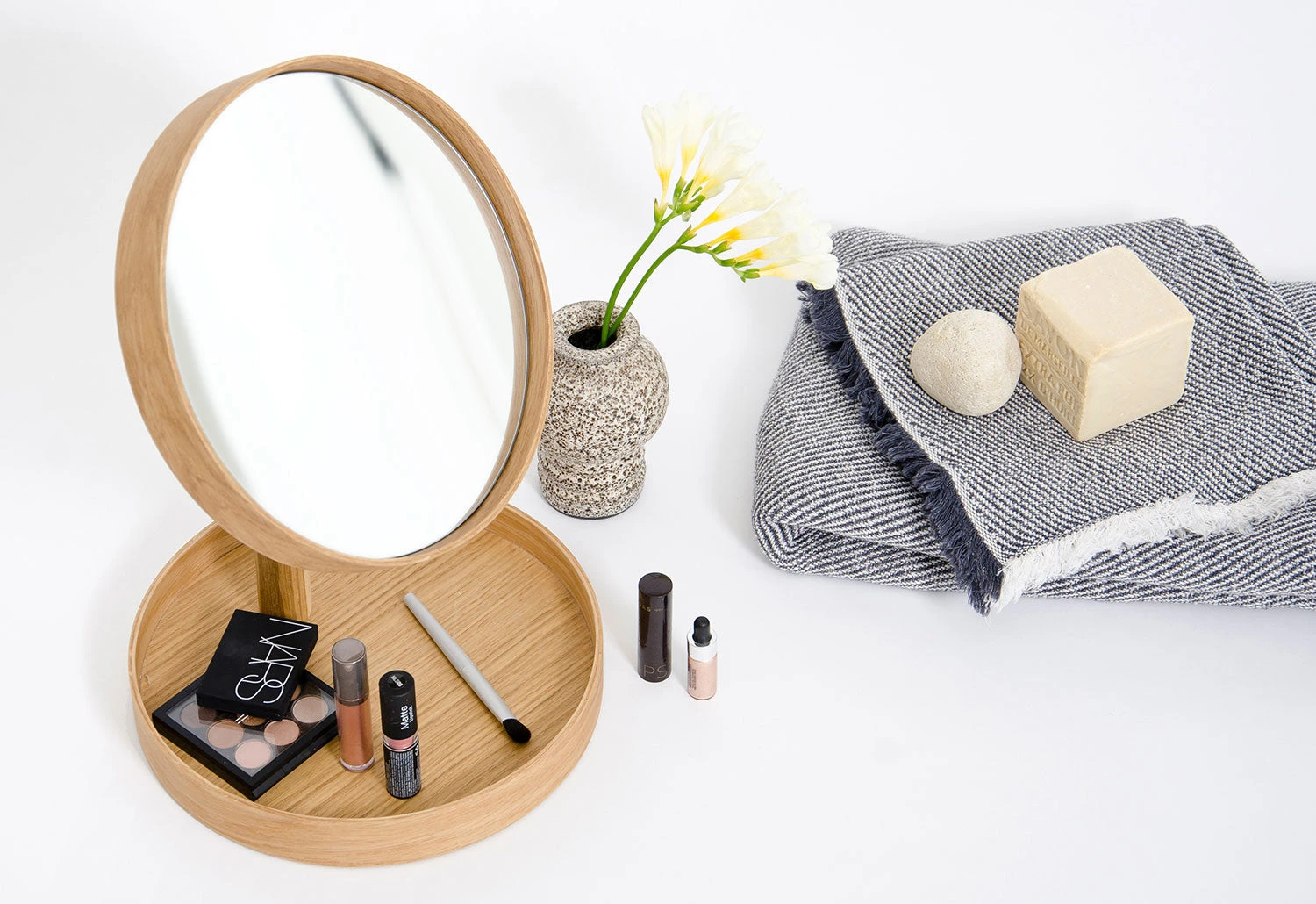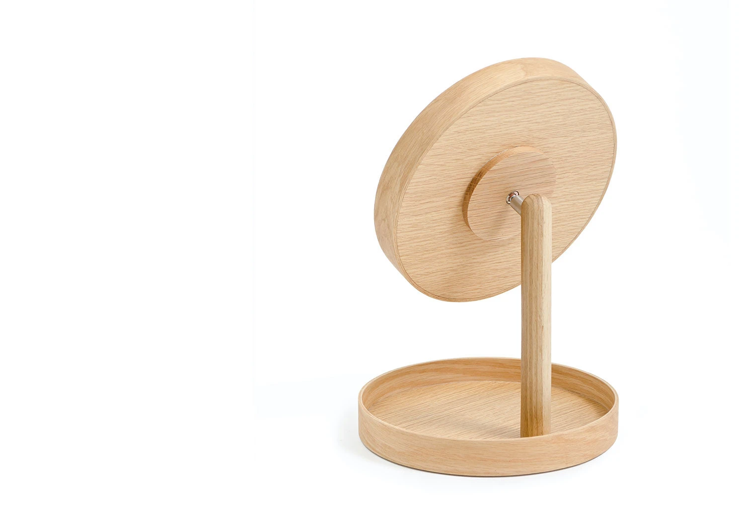 The minimal Look magnify mirror designed by Lincoln Rivers for wireworks is characterised by its slender-edged oak frame. The table mirror is a multifunctional piece, the base balances the design and acts as a practical storage tray to store and organise your belongings.