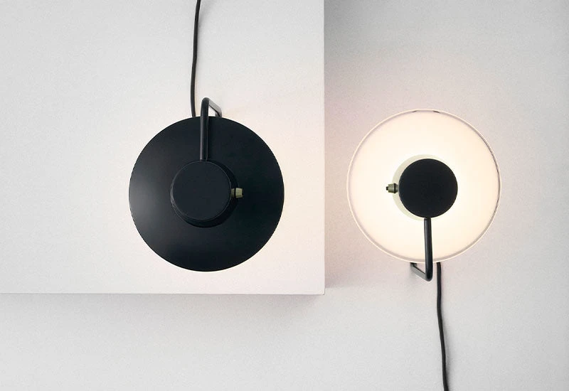 The metal black/opal glass emits a pleasant downward-directed light, softly illuminating the surface below through the three-layered mouth-blown opal glass, whilst the opal glass shade delivers an additional glow that creates a halo around the fixture.