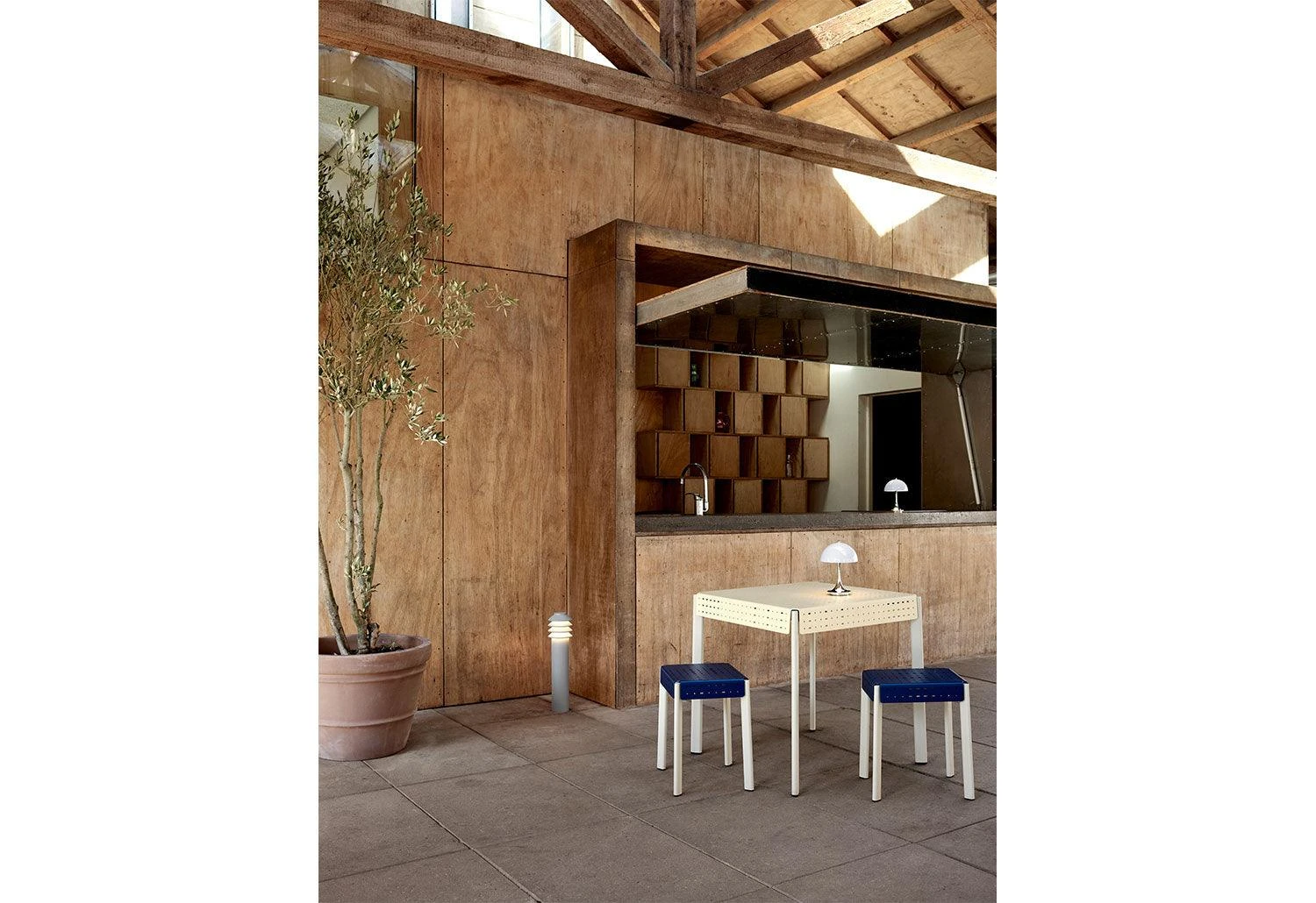 The Bysted Garden is a nearly identical, downscaled version of the original Bysted bollard. It shares a similar design but has had a few modifications, including removing the bolts on top of the fixture to create a more streamlined aesthetic.