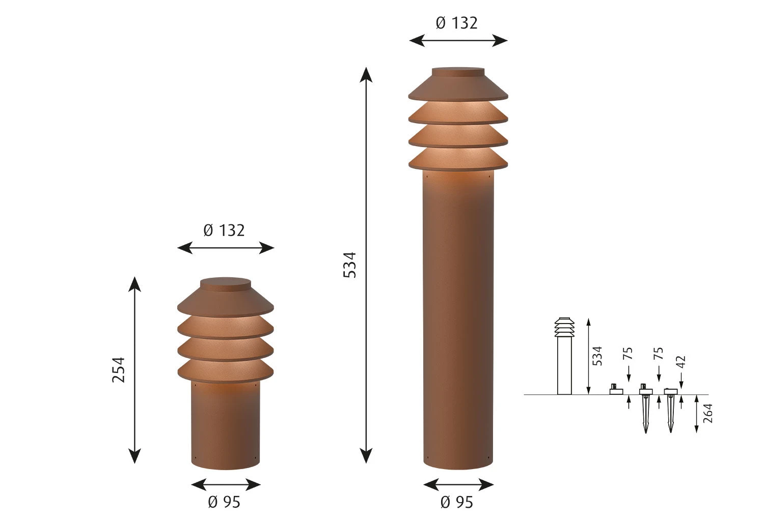 Light Source: LED 2700K, 3000K and 4000K (Aluminium colour only). No dimming. 14W. Lumen package: 152lm (3000K,corten).