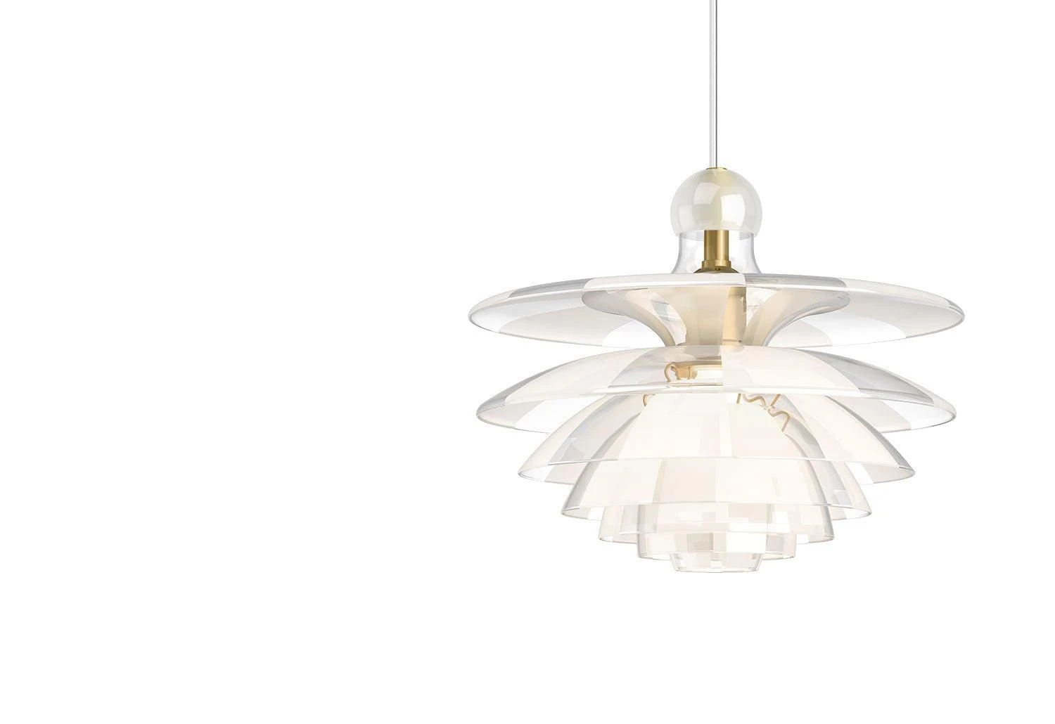 The tiered glass pendant is a striking modern light. Its transparent shades illuminate the fixture as well as emitting diffused light with a unique pattern. The fixture provides decorative and comfortable lighting.
