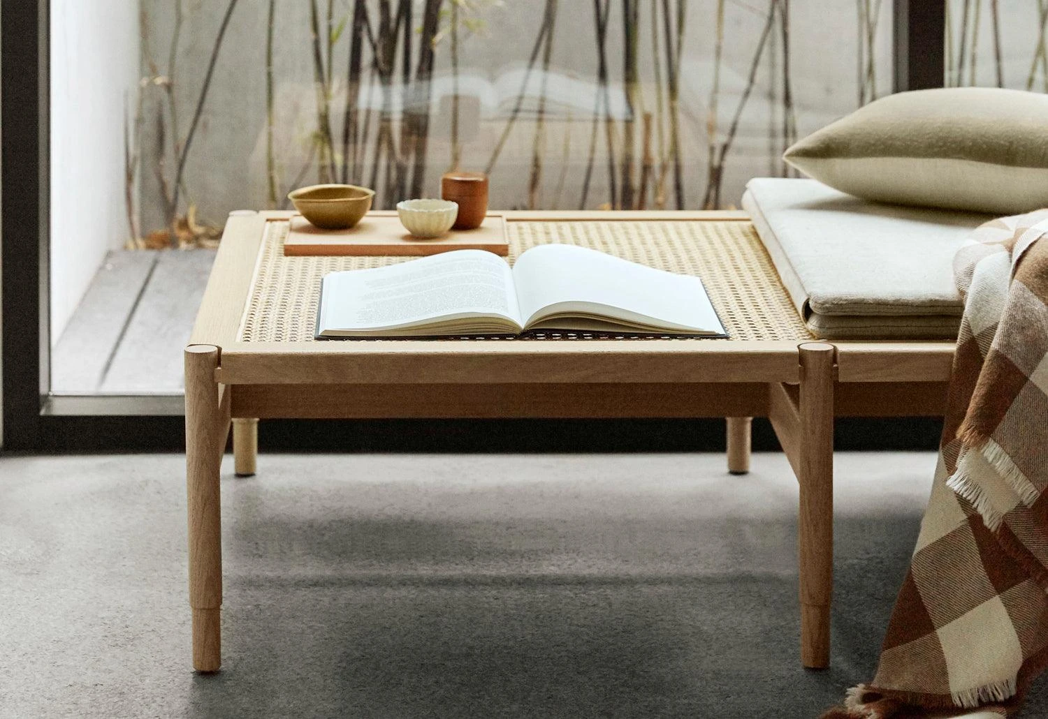 Composed of solid sustainably sourced oak and a woven wicker seat the versatile daybed is a contemporary take on traditional shaker-style furniture. The minimalist and elegant bench is a timeless design.