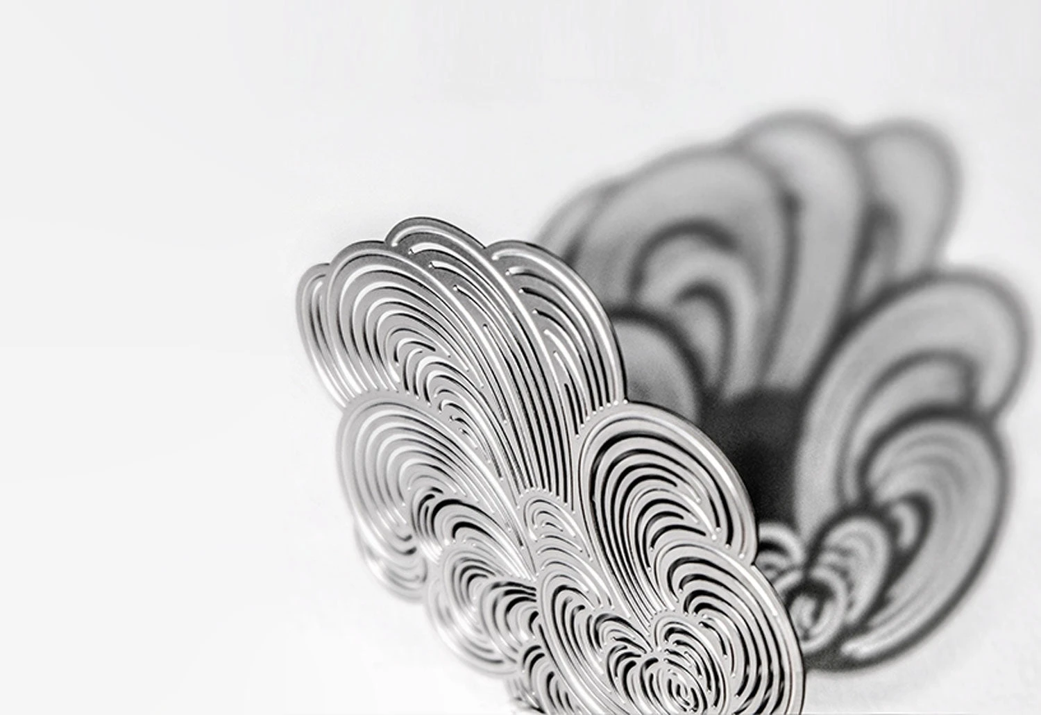 The lightweight and delicate brooch can be worn on its own or grouped with the other designs from the collection to create exciting compositions.