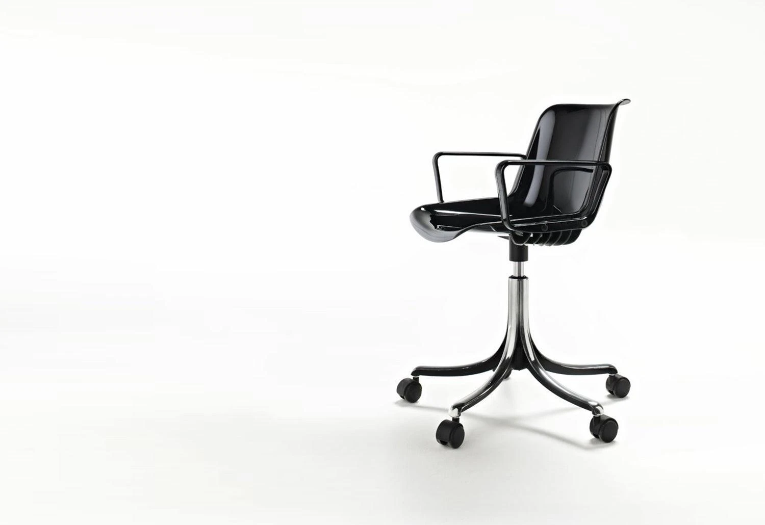 The chair features a 4-star die-cast aluminium base and polished black polyamide body. The chair is also equipped with armrest, height adjustable feature and castor wheels.