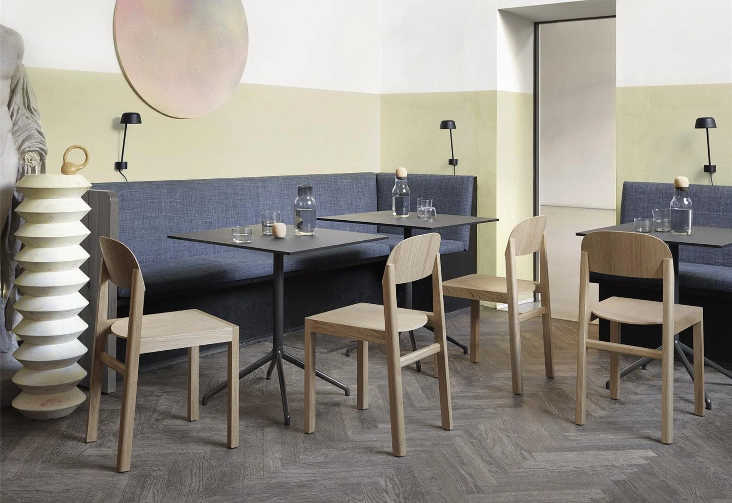 The Still Café Table is designed for function with a minimal aesthetic. Sitting on a four-legged base, it is paired with the angled edges of its square tabletop or the rounded curves of its round tabletop.