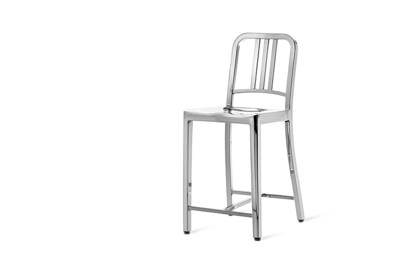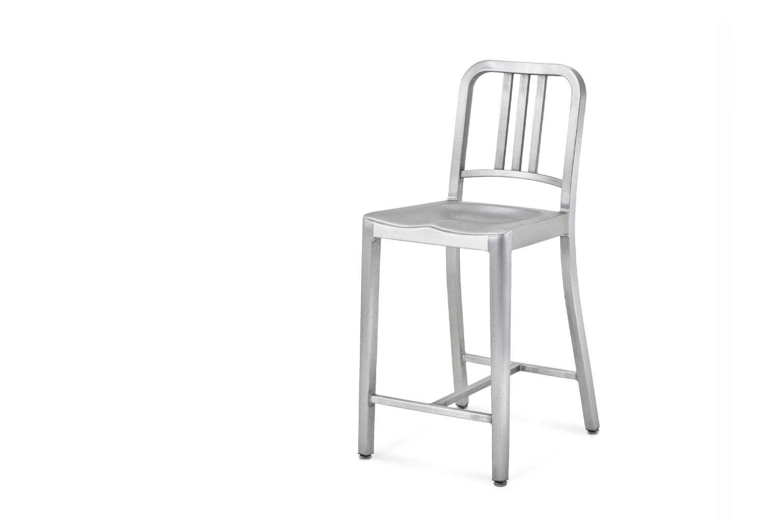 First designed in 1944 for the United States Navy, the Navy range had to withstand the most rigorous conditions onboard warships and submarines in active service. A process was designed to strengthen aluminium, which in turn enabled Emeco chairs to be very light and very durable.