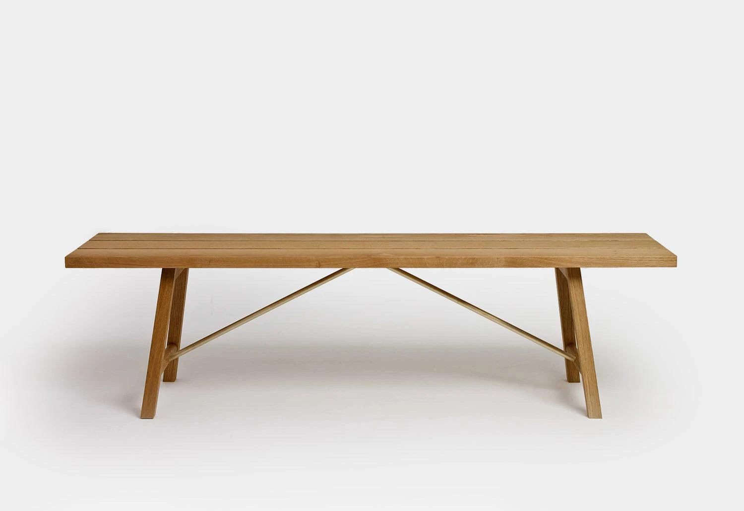 Generous in scale and accented with beautiful brass detailing, Outdoor Bench Two is the outdoor version of the indoor Side Bench Two.