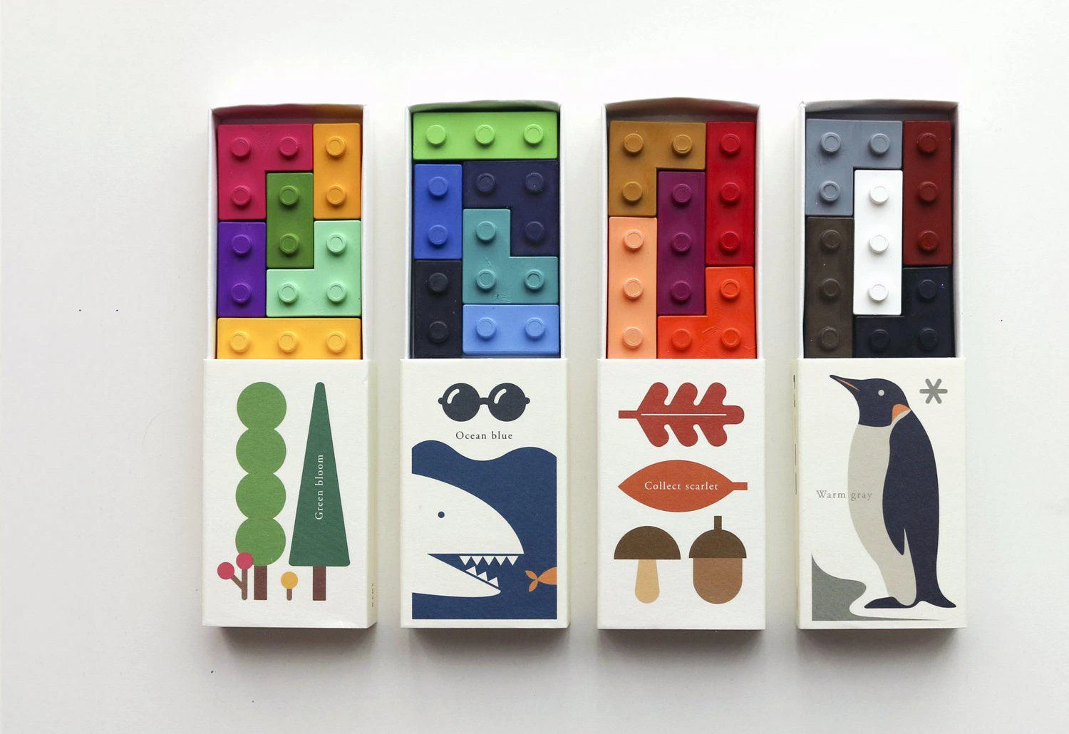 Each set of crayons are housed in a small box and can be stacked together and played with, much like real Lego.