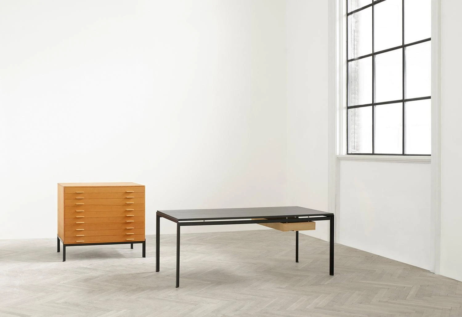 Poul Kjaerholm designed the Student desk and Professor desk in 1955 for the Royal Danish Academy of Fine Arts. The two desks are very important in Poul Kjaerholm’s career and mark the start of Kjaerholm’s reputation as one of the world’s leading furniture designers.