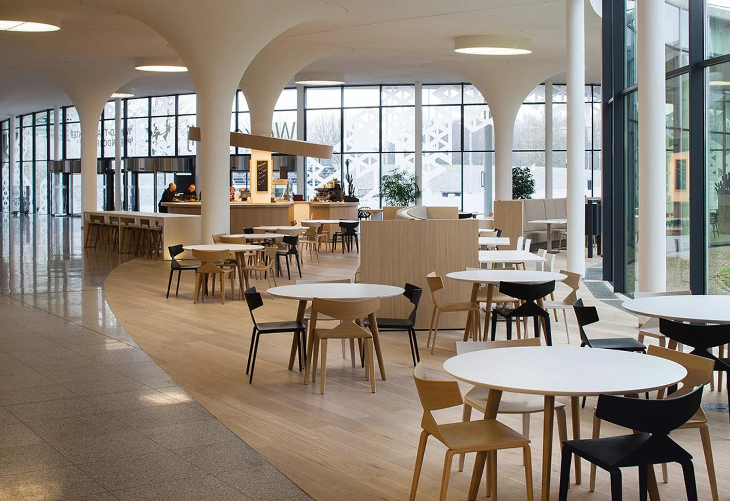 The sculptural Saya dining chair has a dynamic angular back which is seamlessly curved for comfort.