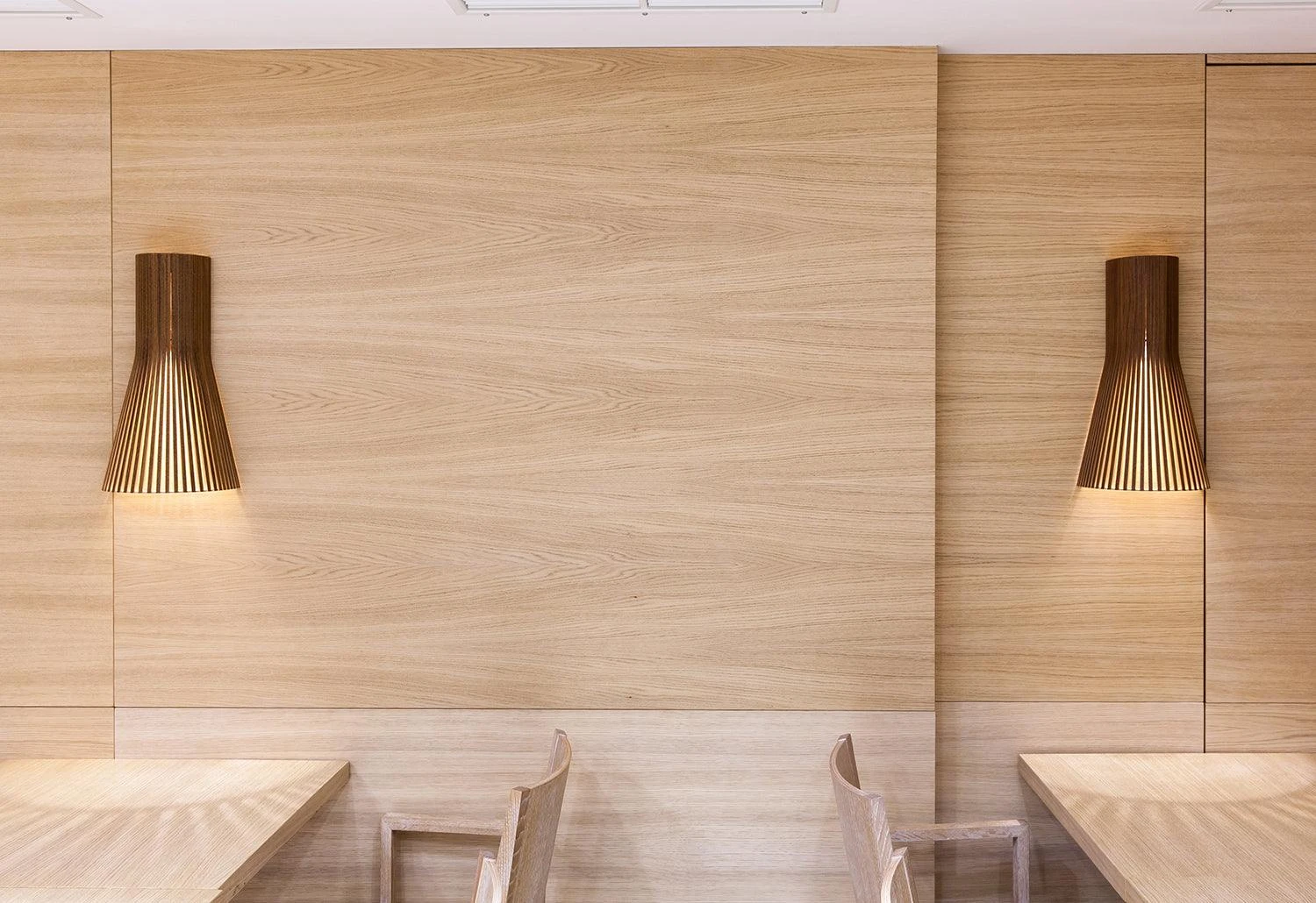 The Secto lights, designed by interior architect Seppo Koho, has a clear and simple Scandinavian feel. The wood provides luminosity to create atmosphere and appeal.