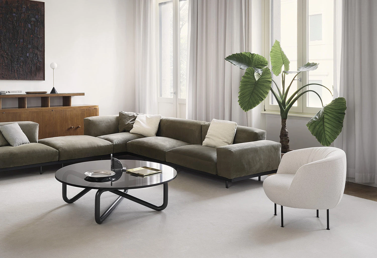 Discover the Supplì armchair, designed by Luca Nichetto. Its inviting and elegant curves create a warm and cosy atmosphere, making it the perfect choice for relaxation and rest.