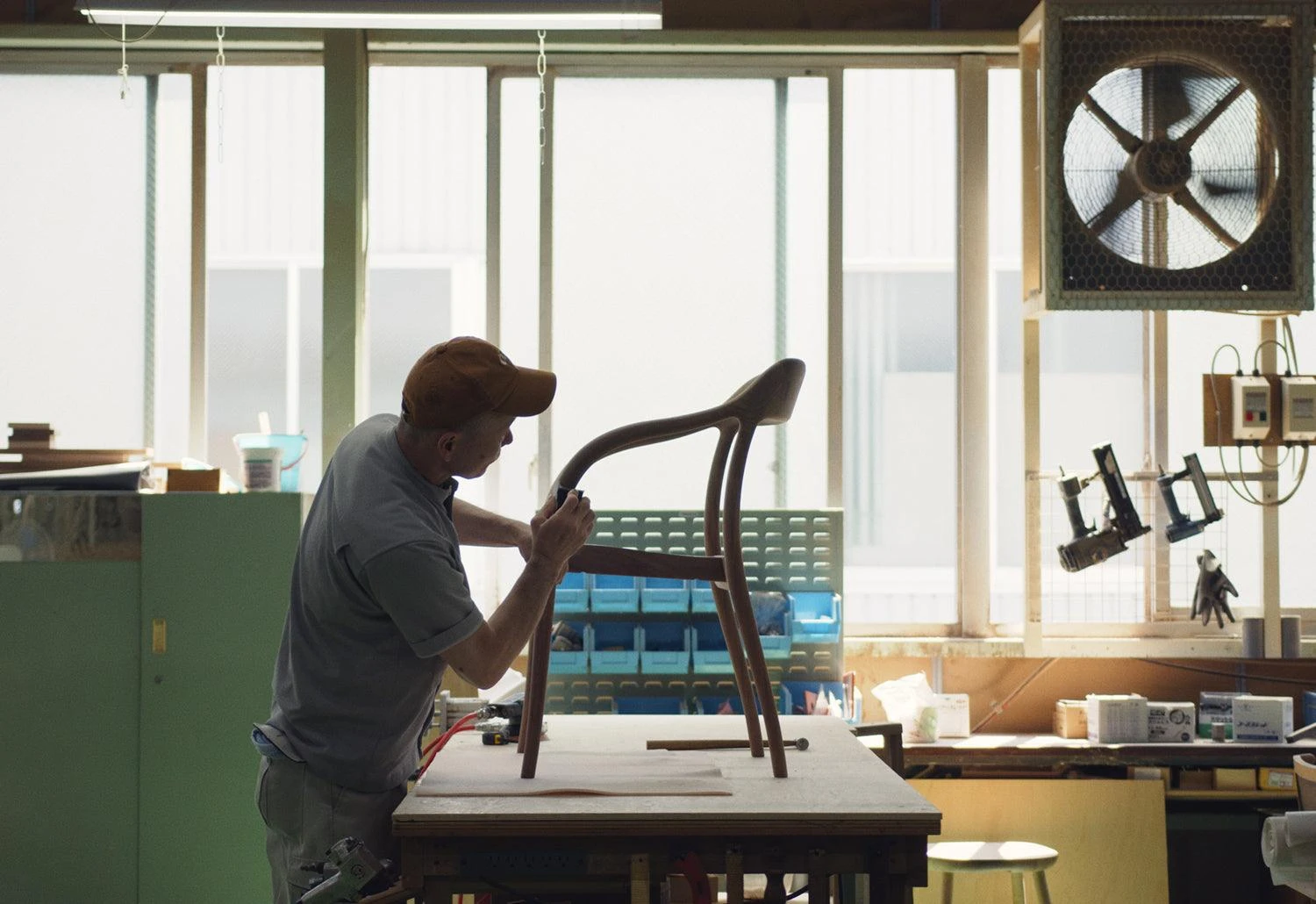 The sinuous sweeping curves of the Tako dining chair have been innovatively created in wood using machine cut pieces. Its organic and sculptural form, with seamless joints, eloquently captures Maruni’s philosophy of ‘Industrialized Craftsmanship’.