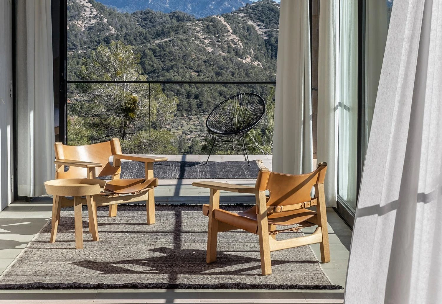 The finished result of the rug initially required prototyping through trial and error to reach the desired texture. The Telares features a loose kilim of curved shapes, whereas traditional kilims are typically geometric.