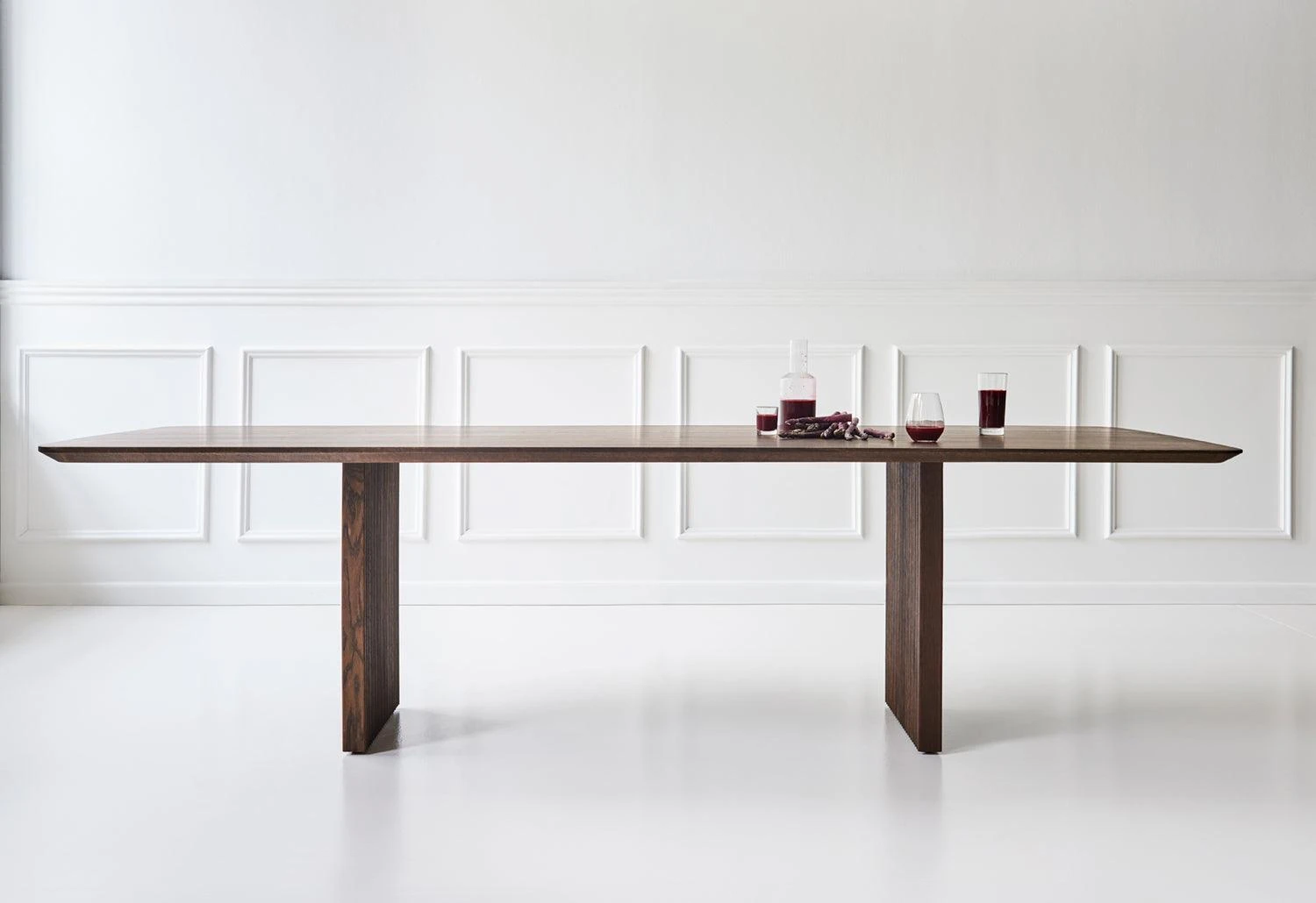 The Ten table is made of a solid wood table top on solid wood legs, a distinctive feature of the products included in DK3’s ‘Solid Wood’ collection. The vertical ridges featured on its slim stilt-like legs add an element of lightness while holding a singular organic solid wood top. All pieces of the table come together to one sturdy and robust form.