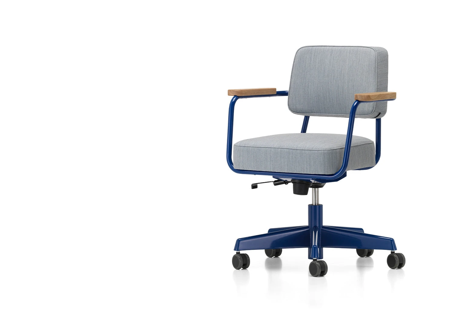 Fauteuil Direction Pivotant is a well-designed and attractive chair in which you can sit comfortably at the table. It pays homage to Prouvé’s typical philosophy of focusing on design factors with a focus on comfort. The little chair is perfect for the home office where, particularly in combination with the small desk Compas Direction, it creates an individual touch.