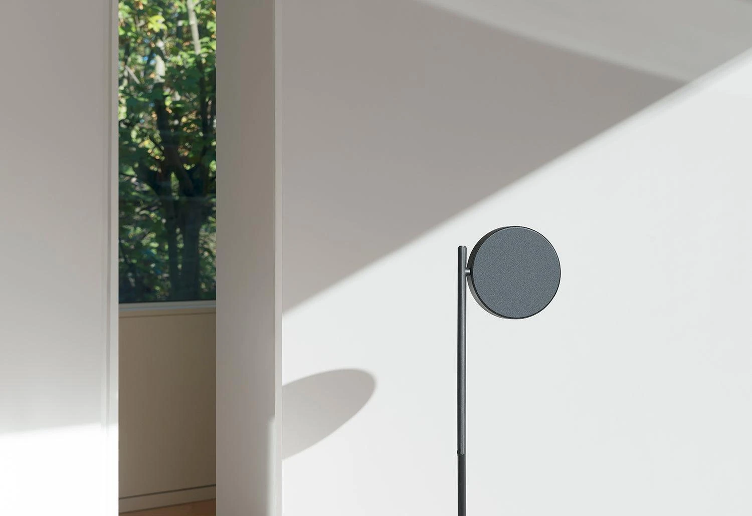 The w182 Pastille F1 is a minimalist floor light that illuminates with a soft, ambient light. Geometric in design, its amiable form features an adjustable disc shade connecting to a slender post.