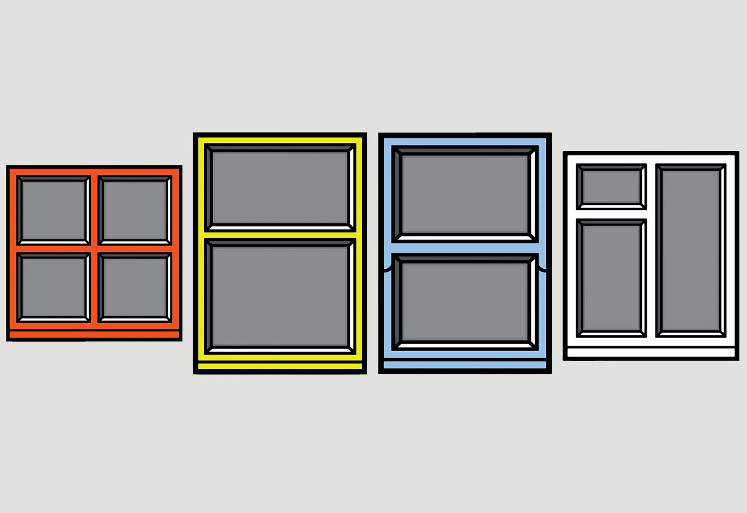 The Window series showcases the Woods’s signature style, where the windows are transformed into cartoon-like representations of themselves made from thick black lines and solid colours.