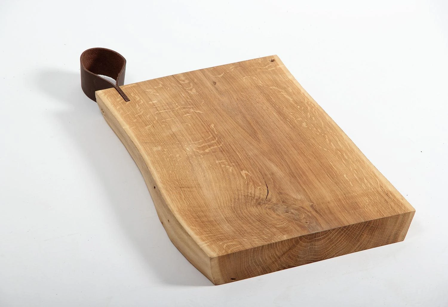 Juozas Urbonsvicius’ range of rustic cutting boards are made from solid oak, cut and beautifully polished by hand, each a unique piece. The smooth surface is coated with protective, nourishing oil, making it very durable.